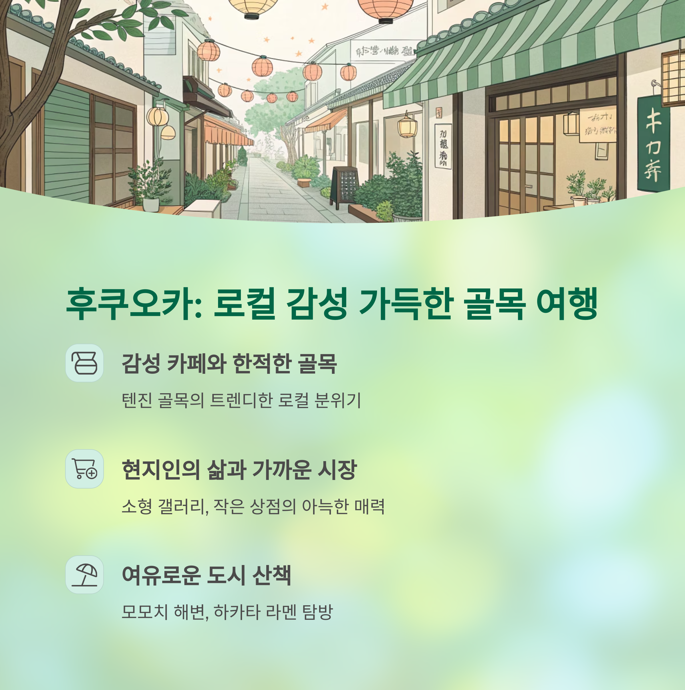 후쿠오카 감성·로컬 중심 골목, 카페, 로컬시장 조용하고 감성적인 여행자
