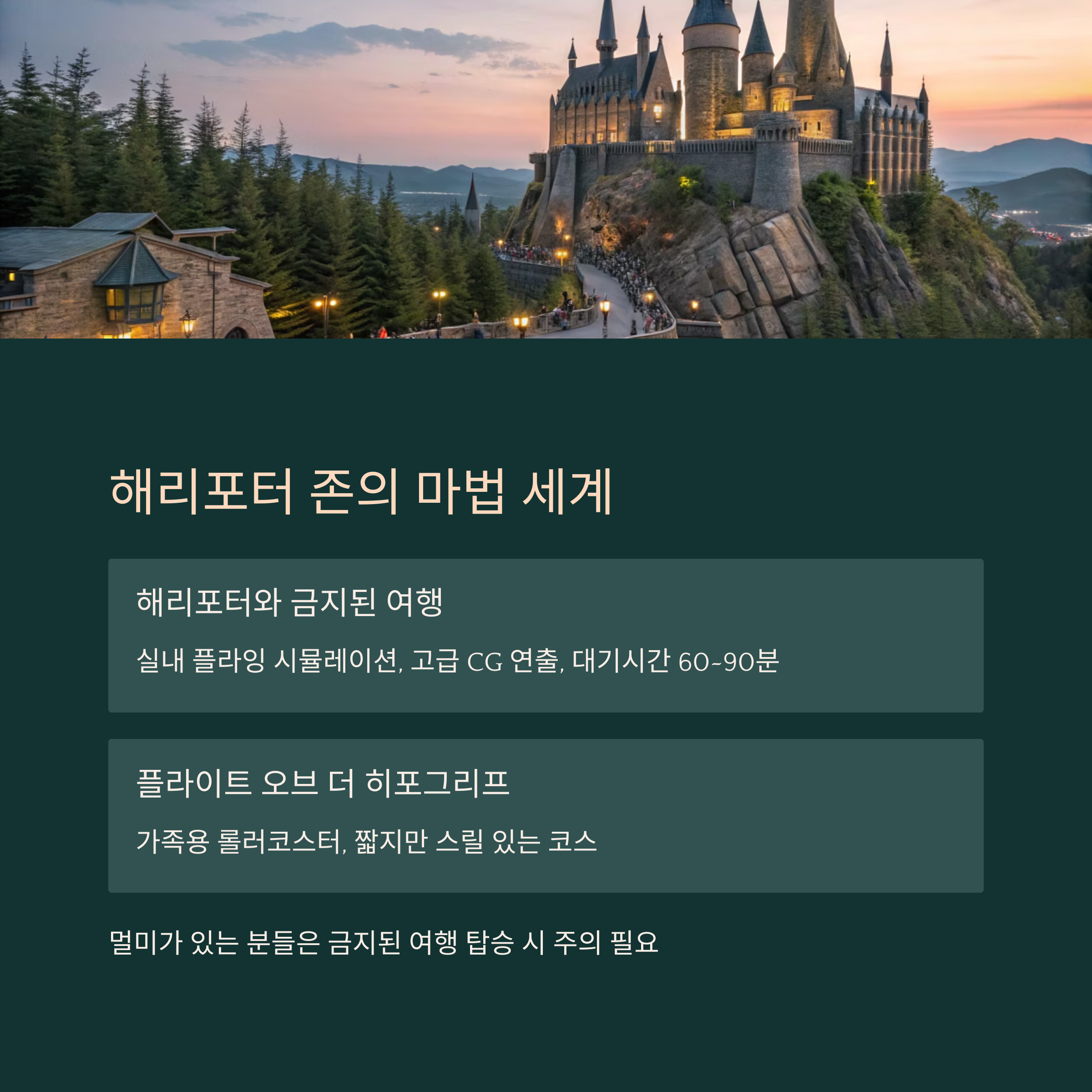 | 해리포터 금지된 여행 | 60~90분 | 매우 높음 |