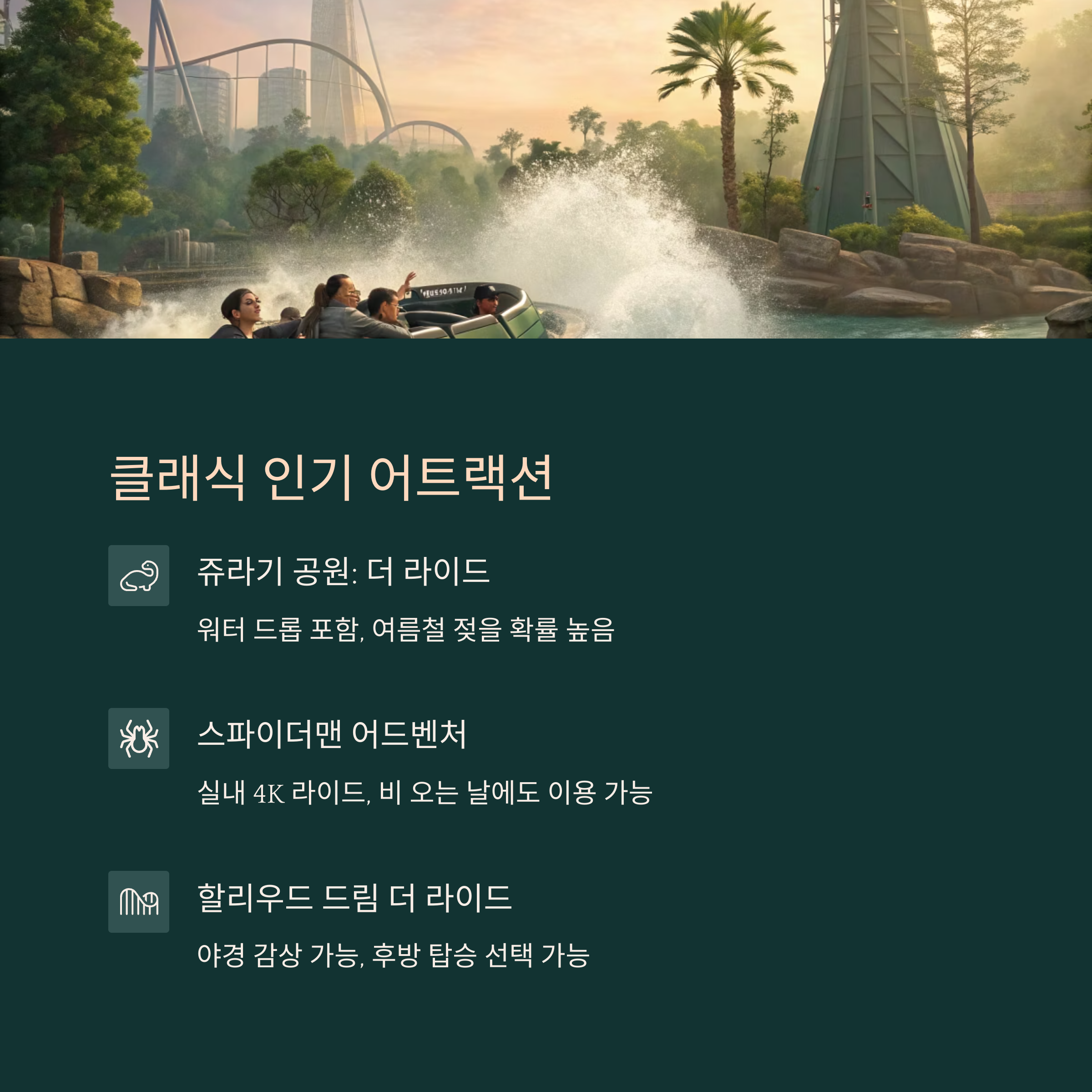 이번 정리에서는 인기 구역별 필수 어트랙션과 탑승 팁까지 함께 안내드립니다.