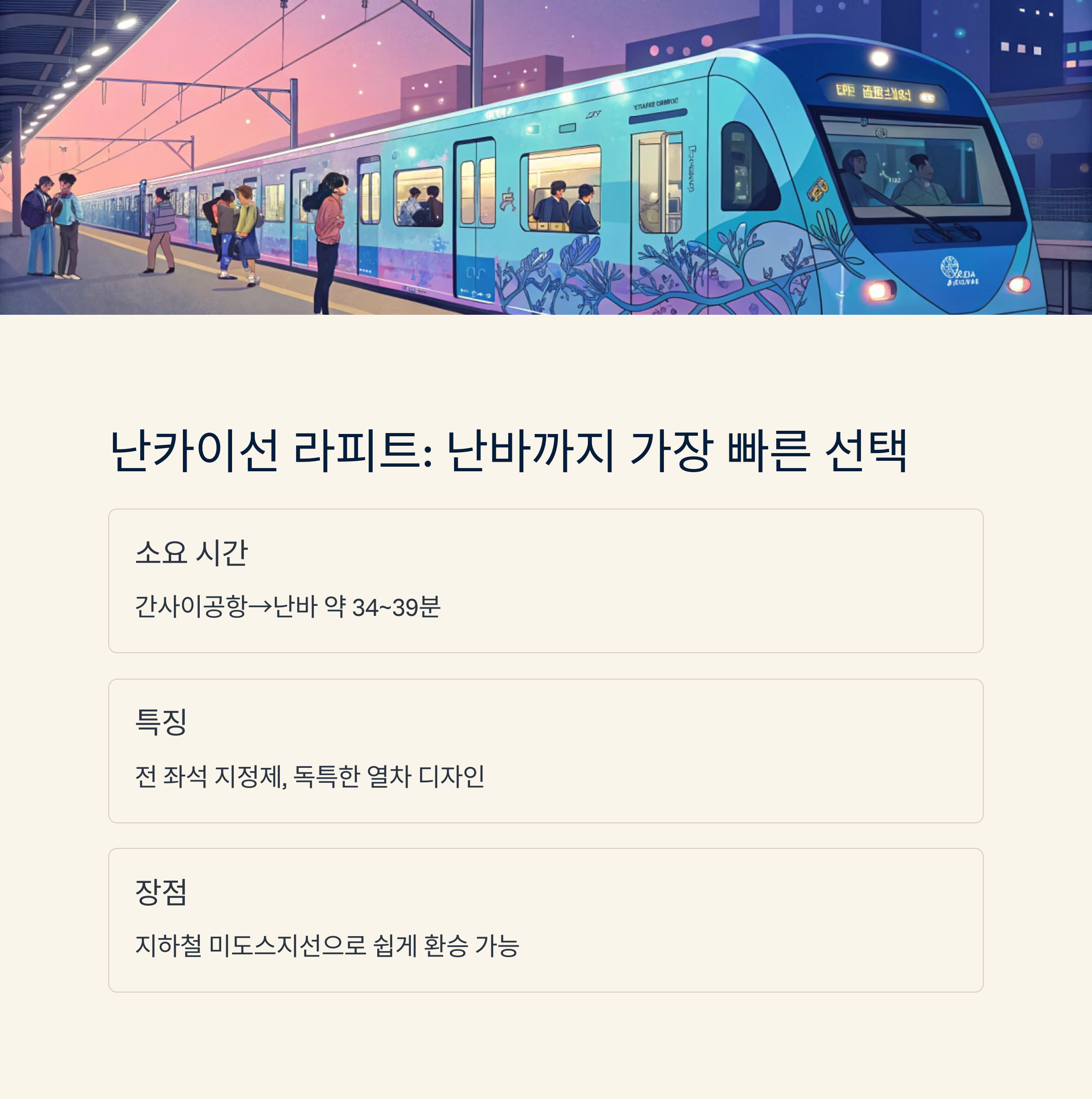 난카이선 라피트 특급이 가장 빠르고 쾌적한 선택입니다