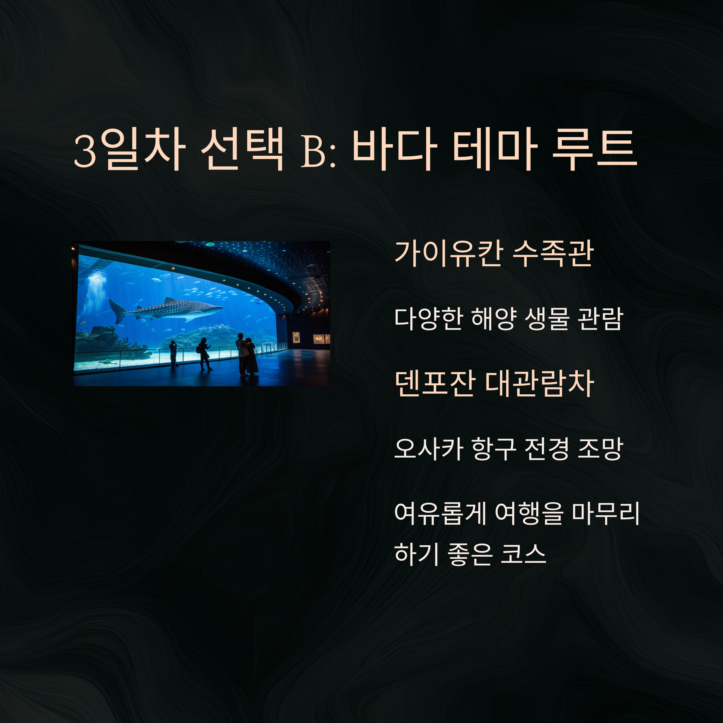 | 3일차 | 선택 A or B | A: USJ / B: 가이유칸, 대관람차 |