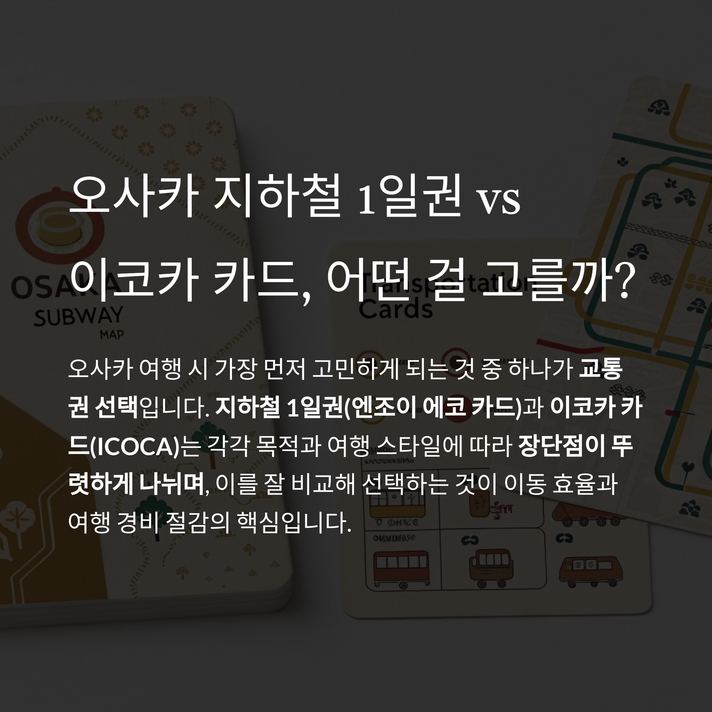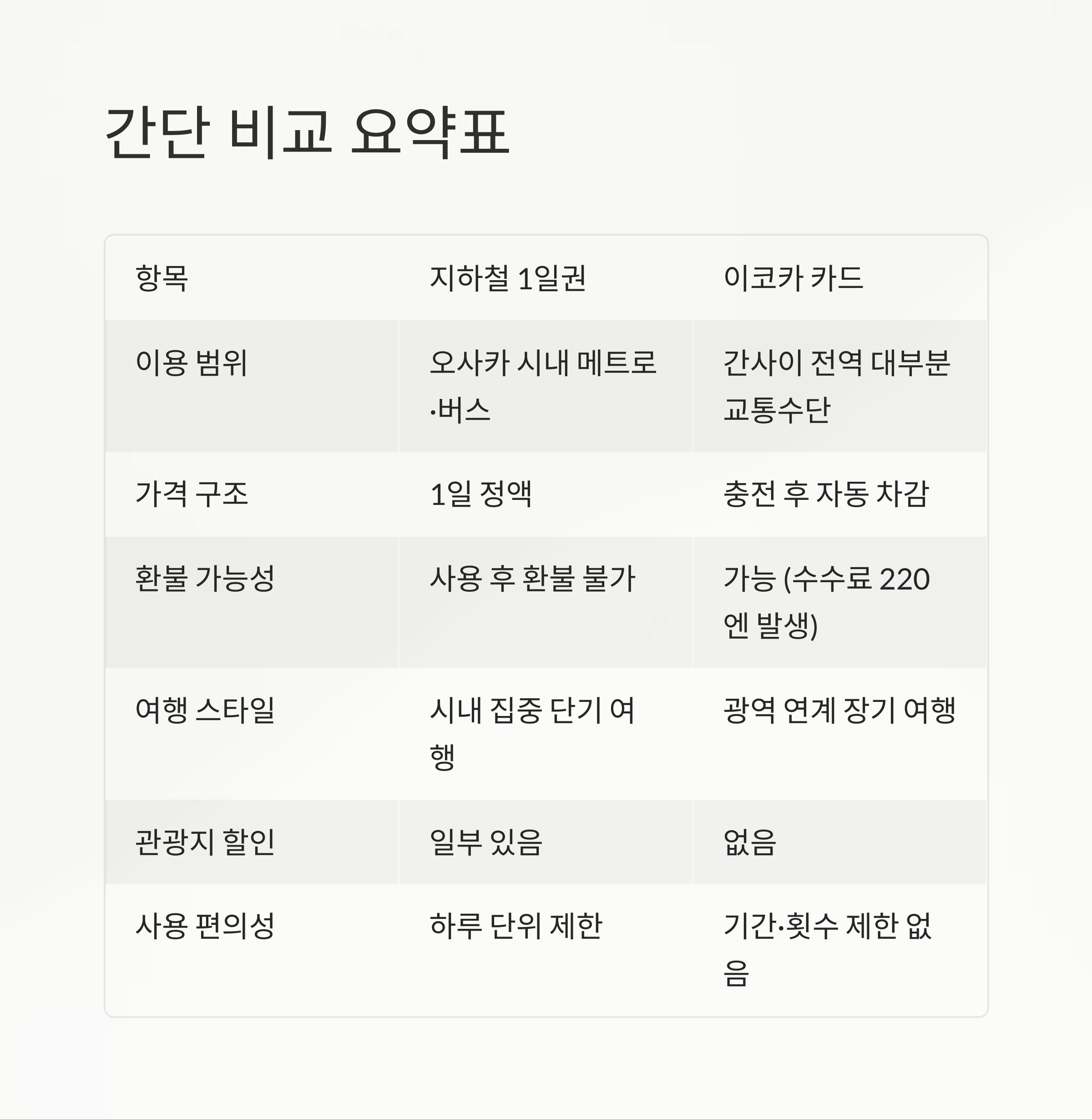 지하철 1일권(엔조이 에코 카드)과 이코카 카드(ICOCA)는 각각 목적과 여행 스타일에 따라