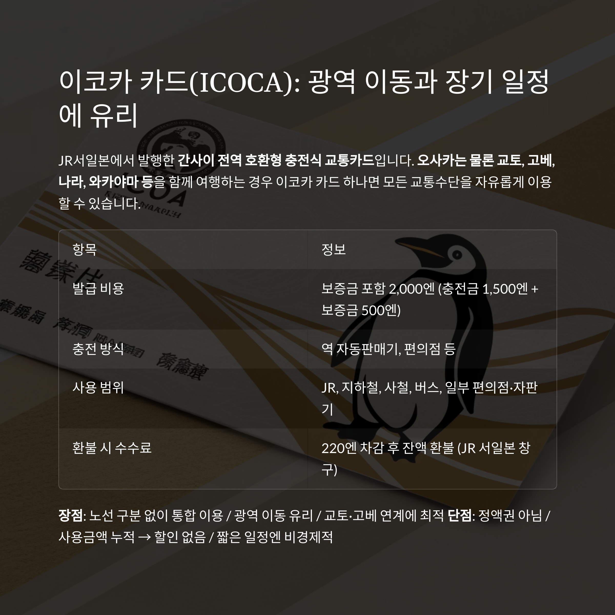 이코카 카드(ICOCA): 광역 이동과 장기 일정에 유리