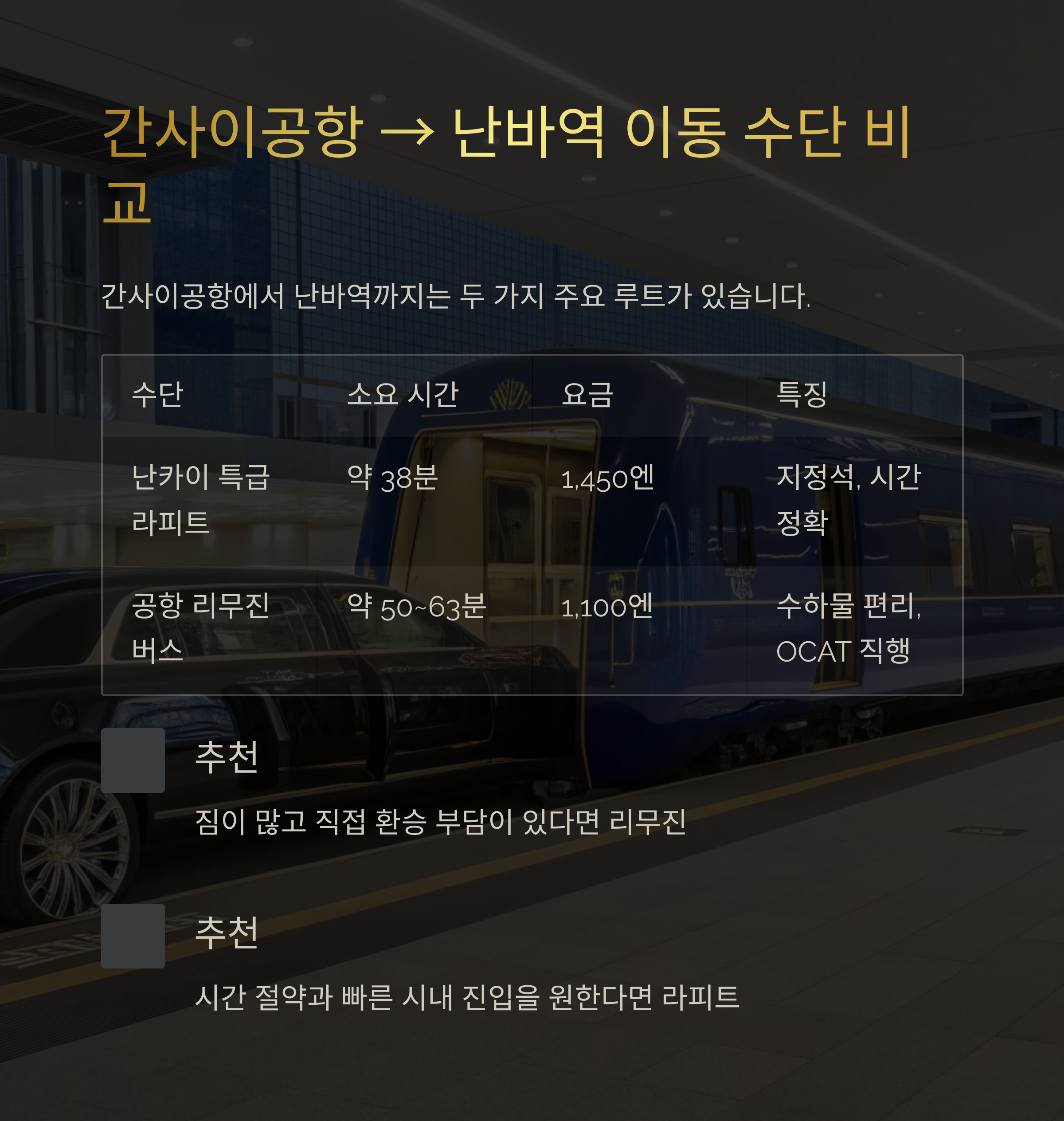 간사이공항 → 난바역 이동 수단 비교