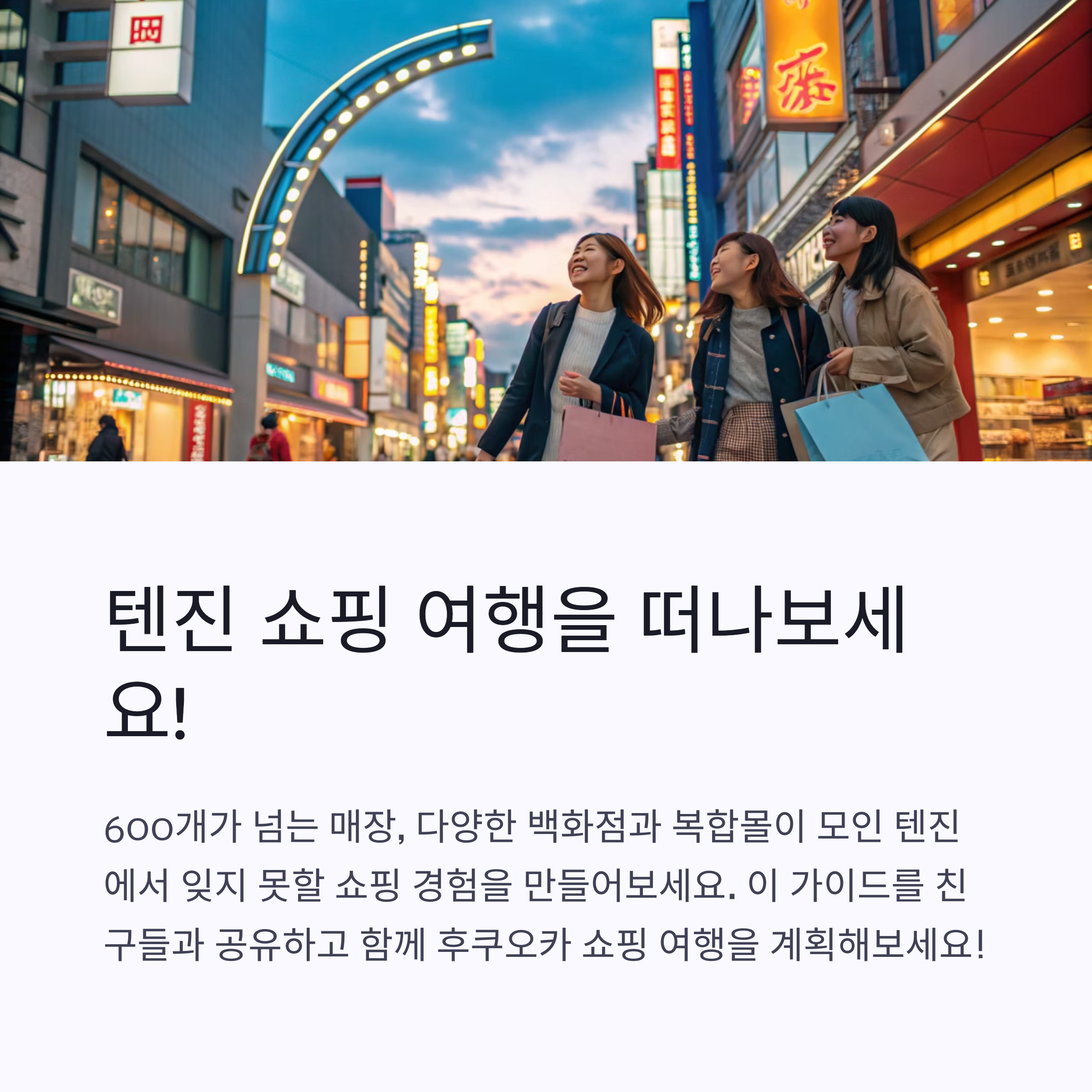 텐진 지하상가는 약 600개 매장이 모인 대형 쇼핑 공간입니다.