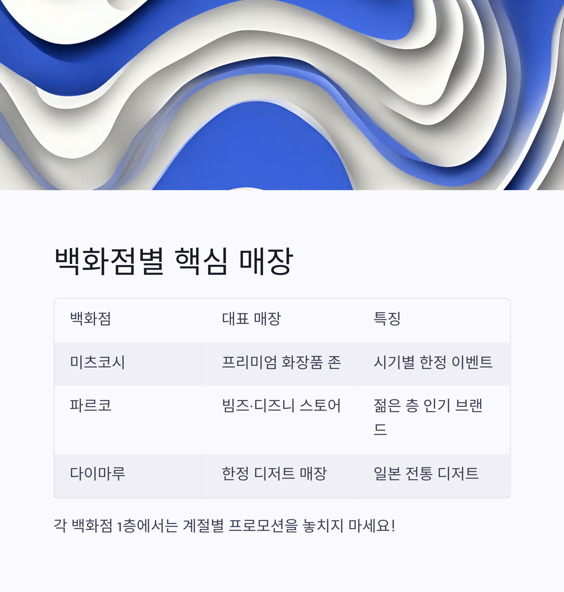 | 미츠코시 | 프리미엄 화장품 존 | 시기별 한정 이벤트 진행 |
