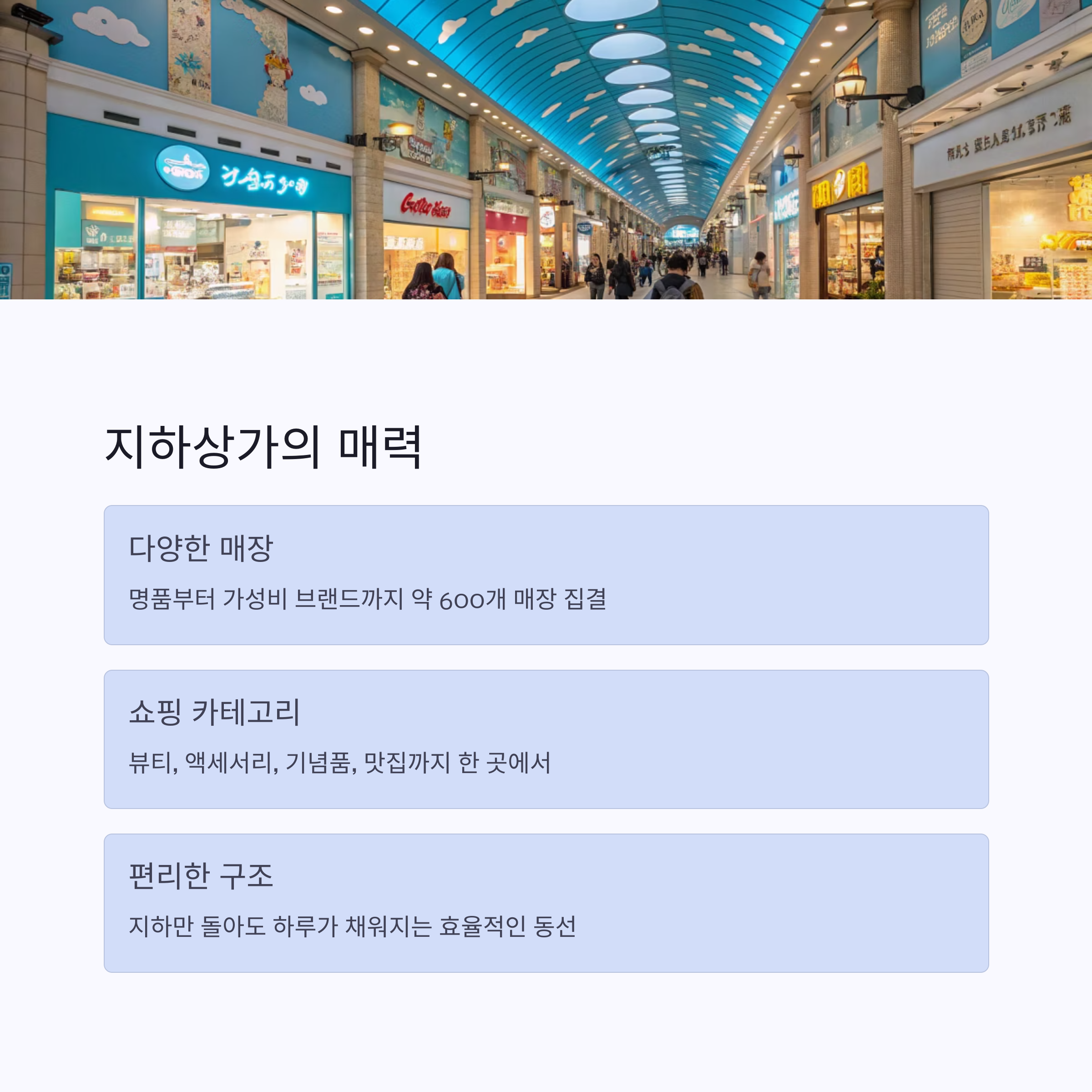 지하만 돌아도 하루가 채워지는 구조입니다.