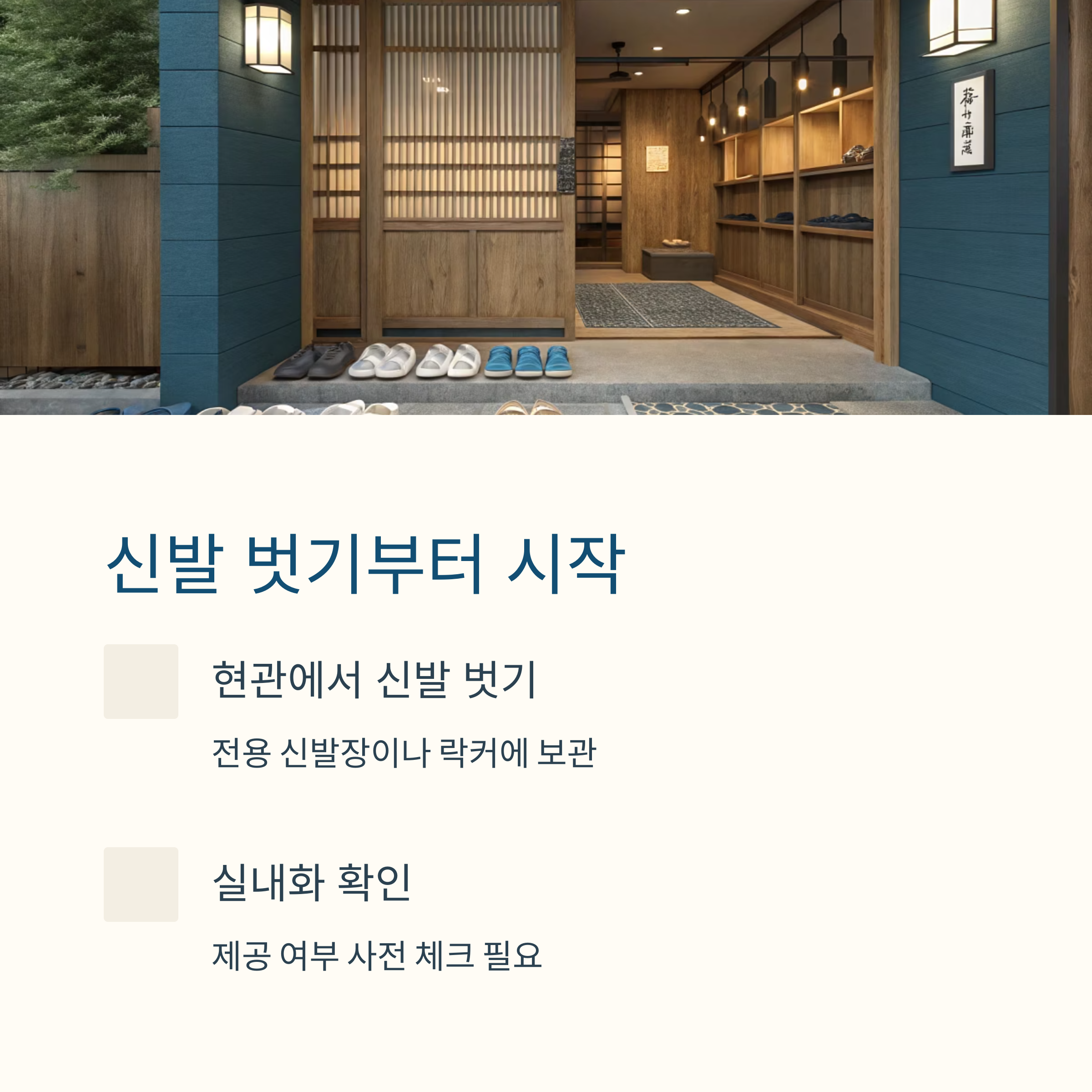 슬리퍼를 따로 챙겨야 하는 곳도 있으니 입장 전 확인이 필요합니다.