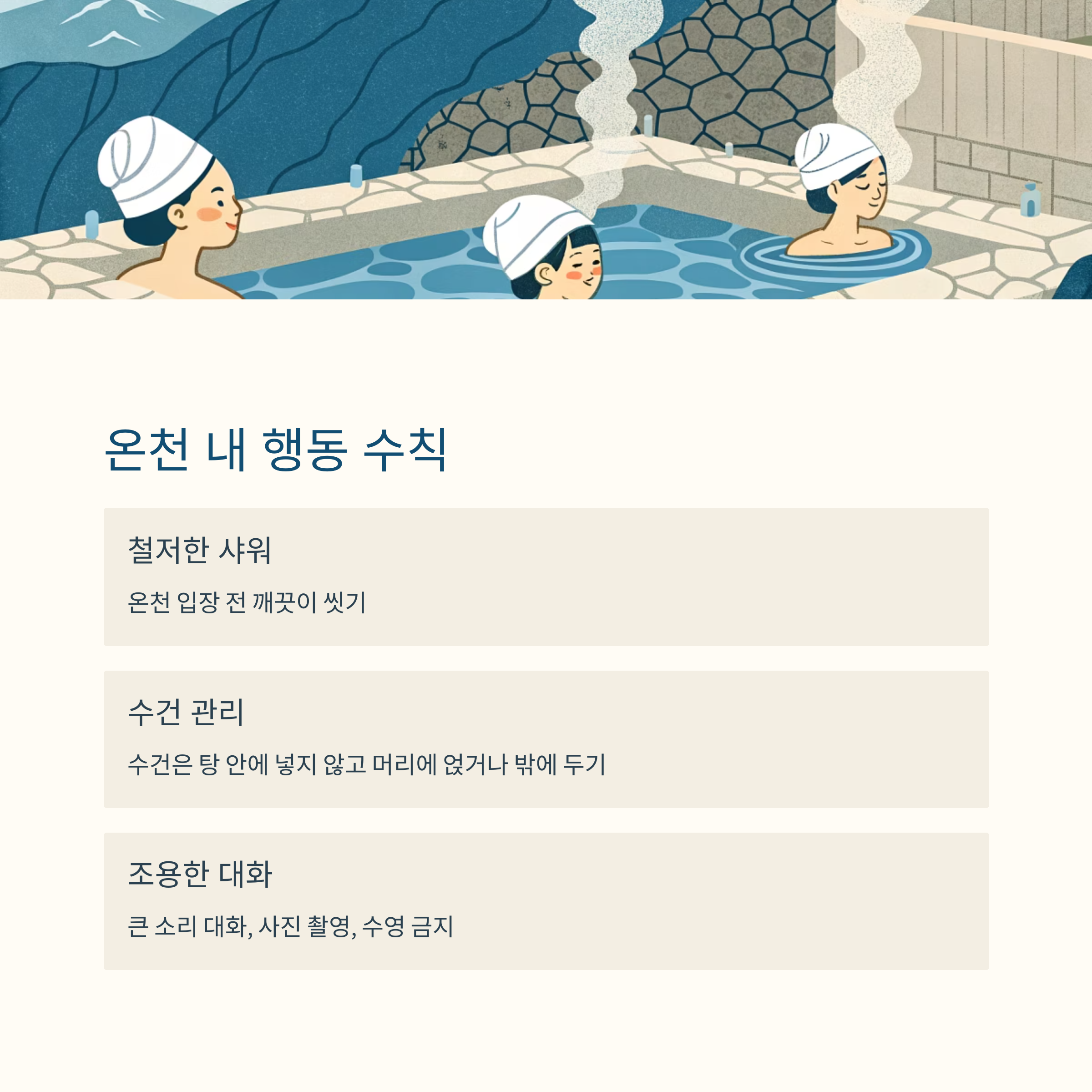욕탕 안에서는 조용히, 수건은 물속 금지