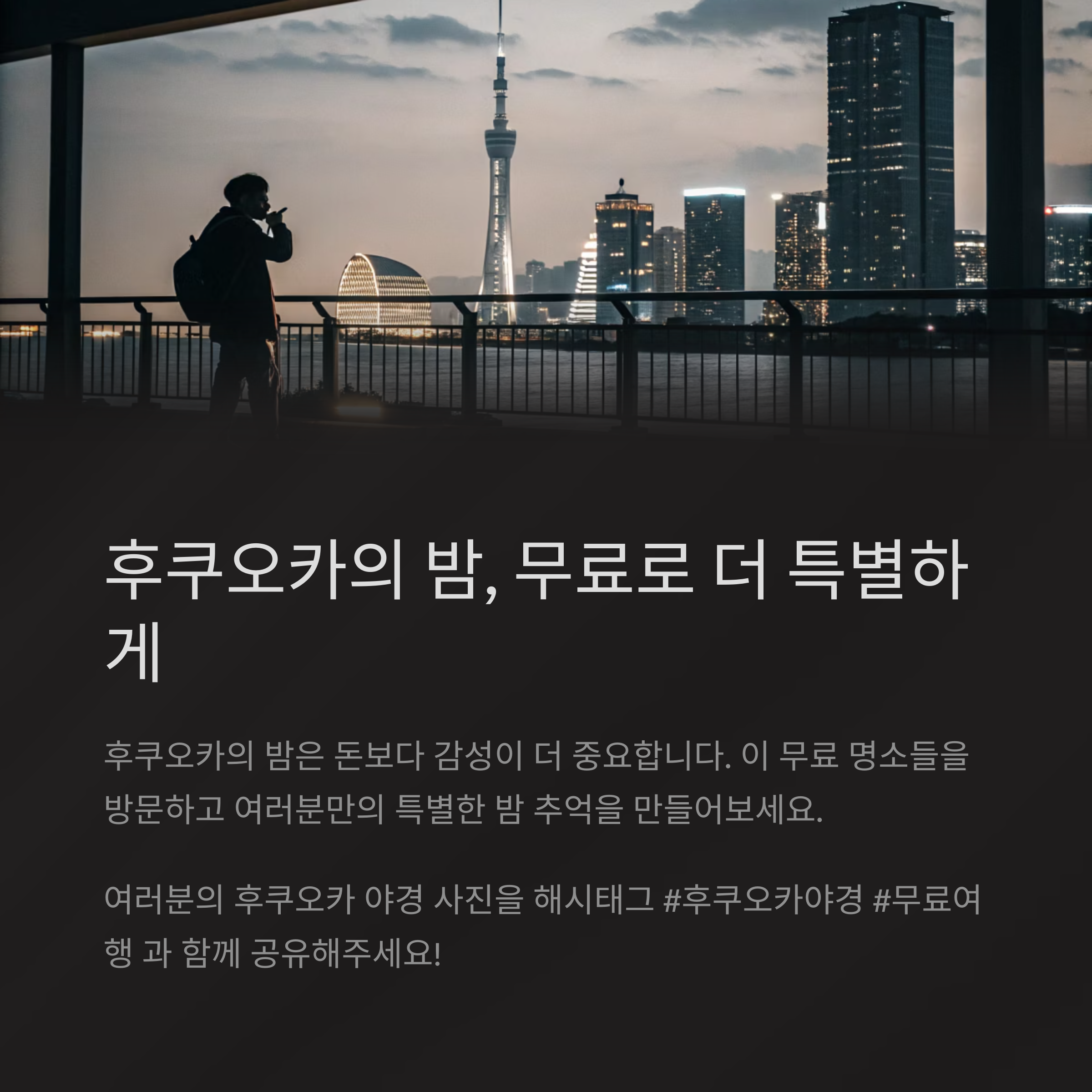 후쿠오카의 밤 무료 명소 세 곳을 소개하고,