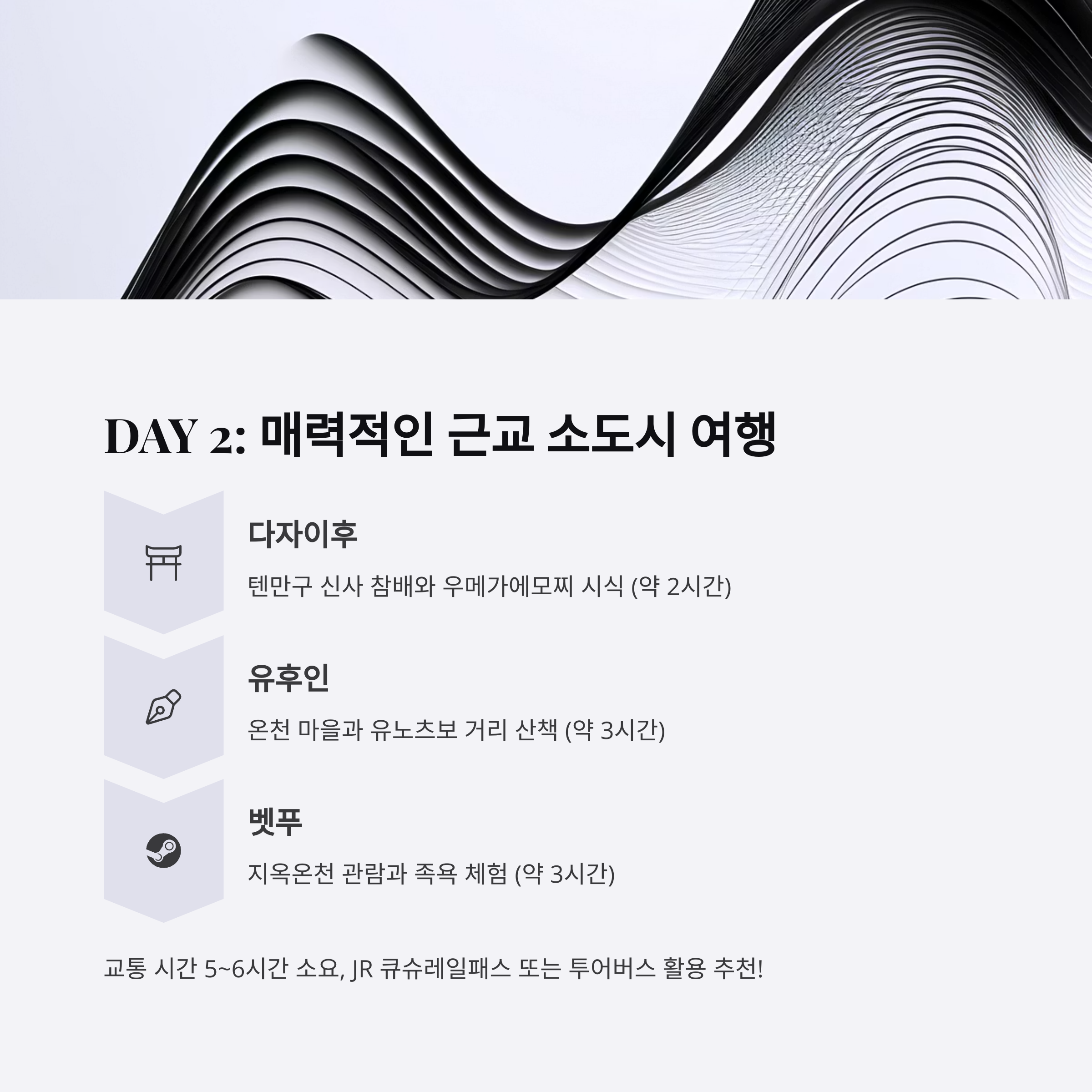 | 2일차 | 다자이후 → 유후인 → 벳푸 (JR 또는 투어) |