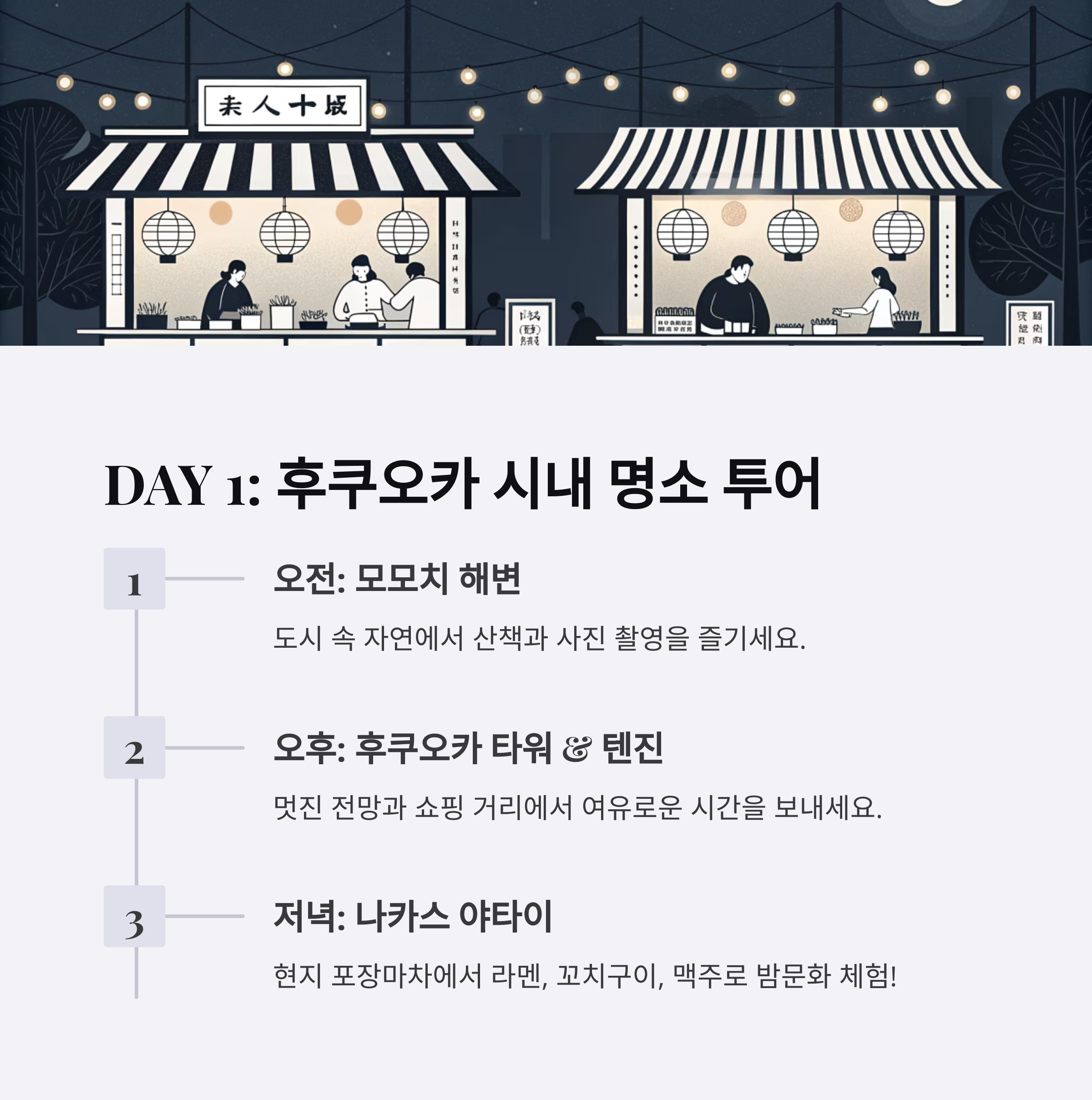 DAY 1: 후쿠오카 시내 명소 + 현지 야시장 체험