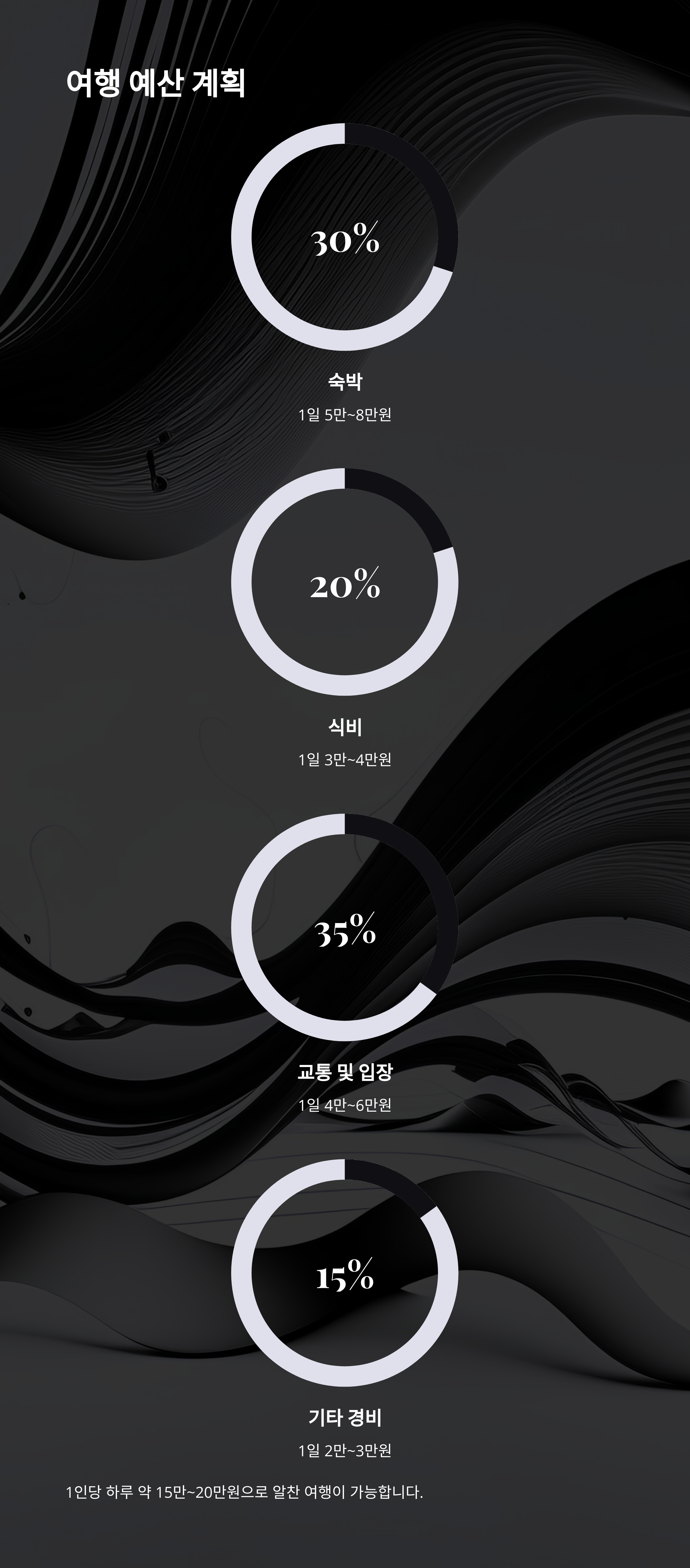 예상 경비: 하루 15~20만원으로 알찬 여행 가능