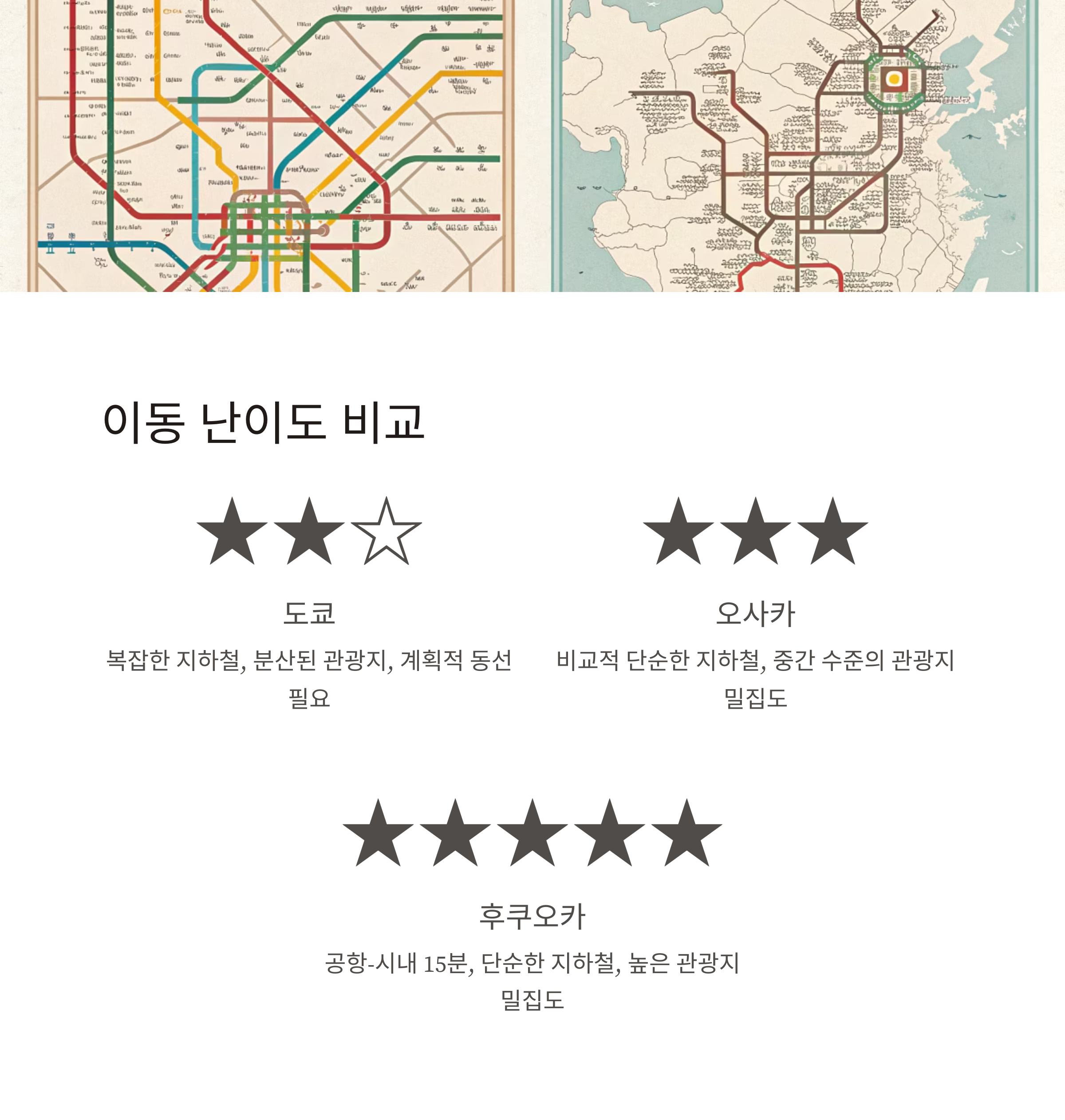 | 공항 접근성 | 중간 (나리타/하네다) | 중간 (간사이공항) | 매우 우수 (후쿠오카 공항) |