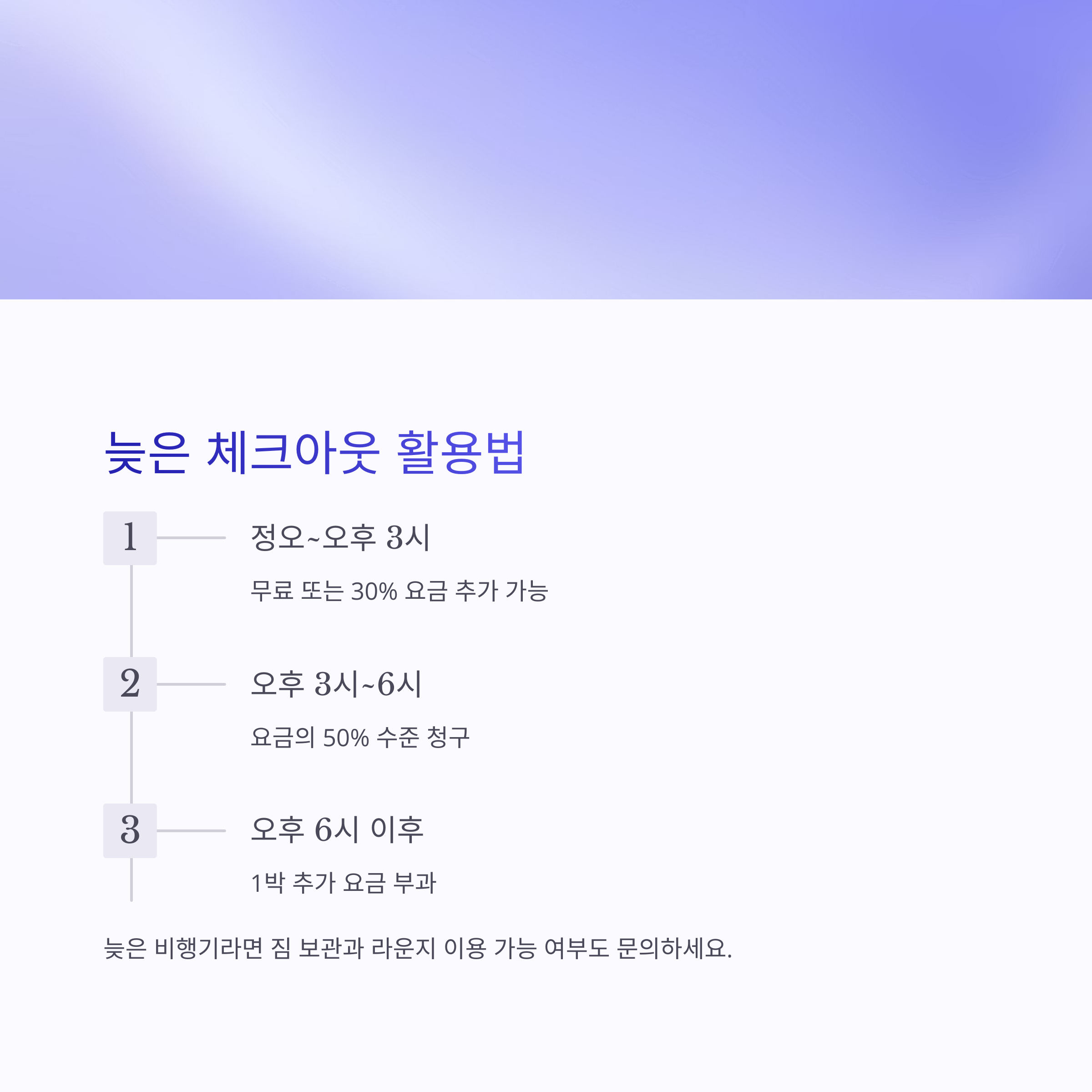 | 늦은 출발 (밤 비행기 등) | 짐 보관 + 라운지 이용 요청 |
