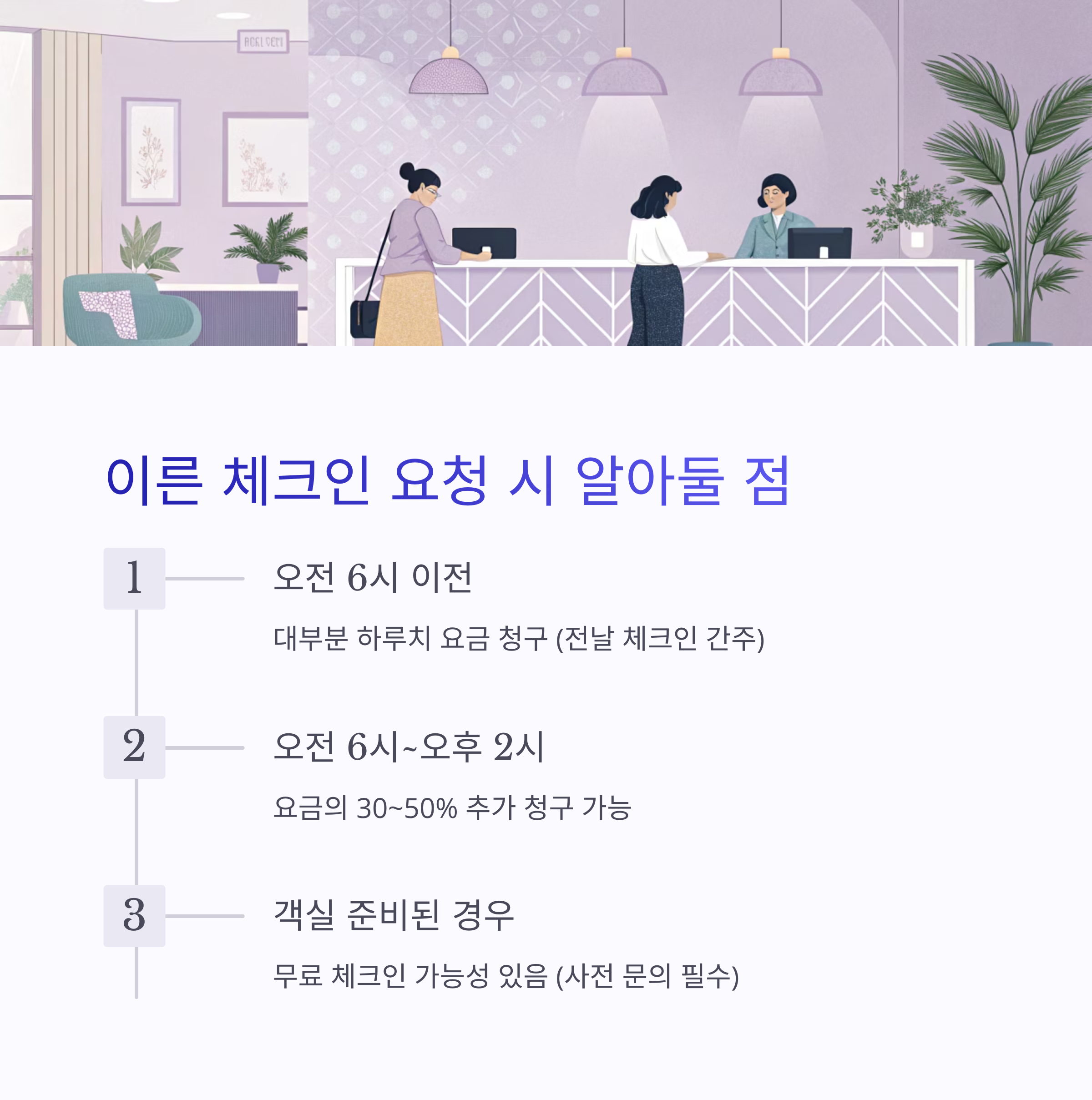 이른 시간 도착 시 체크인을 원하면 다음 조건에 유의해야 합니다.