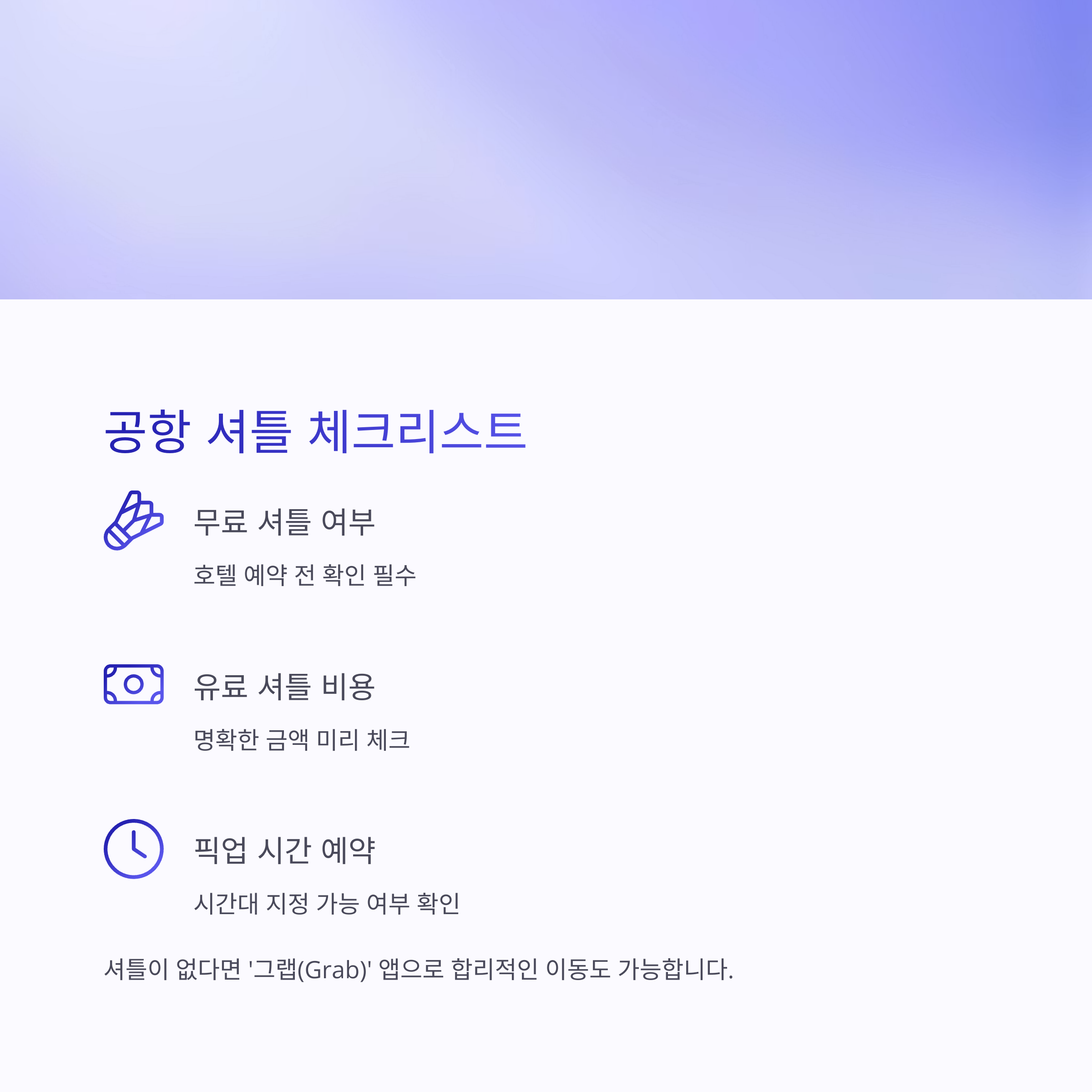 호텔 셔틀 여부 확인 필요 공항 도착 후 빠른 이동 대비