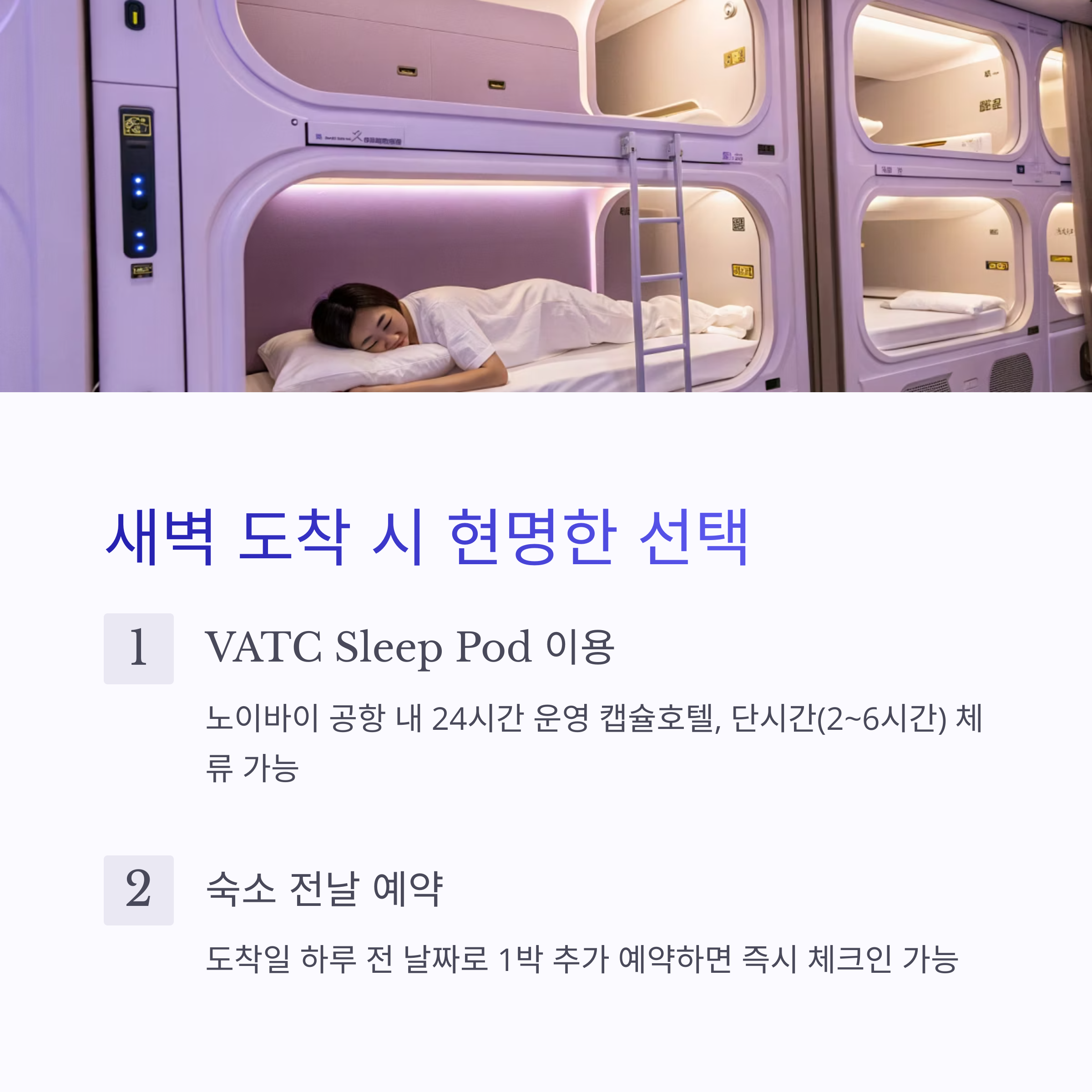 새벽 도착 Sleep Pod 이용 또는 1박 추가 예약