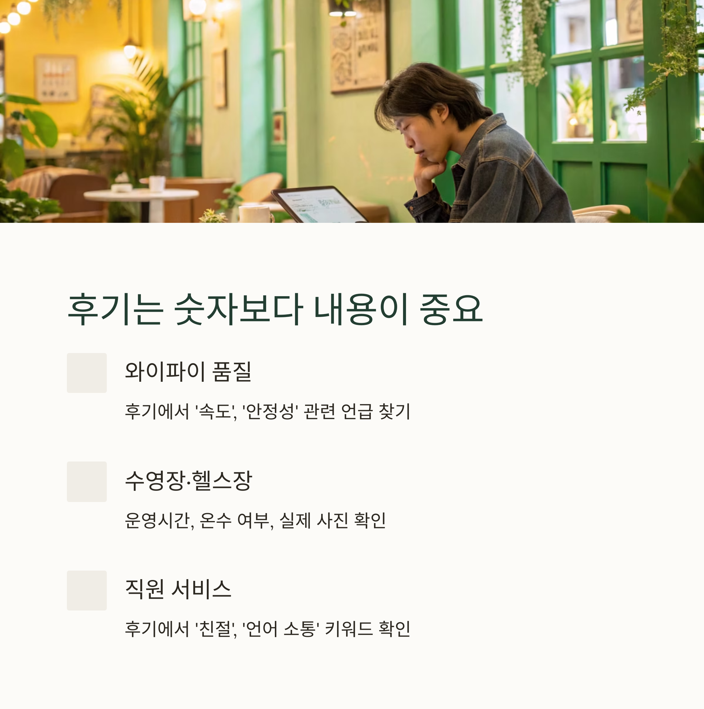 4. 편의시설과 실제 후기: 후기 평점은 숫자보다 내용이 중요