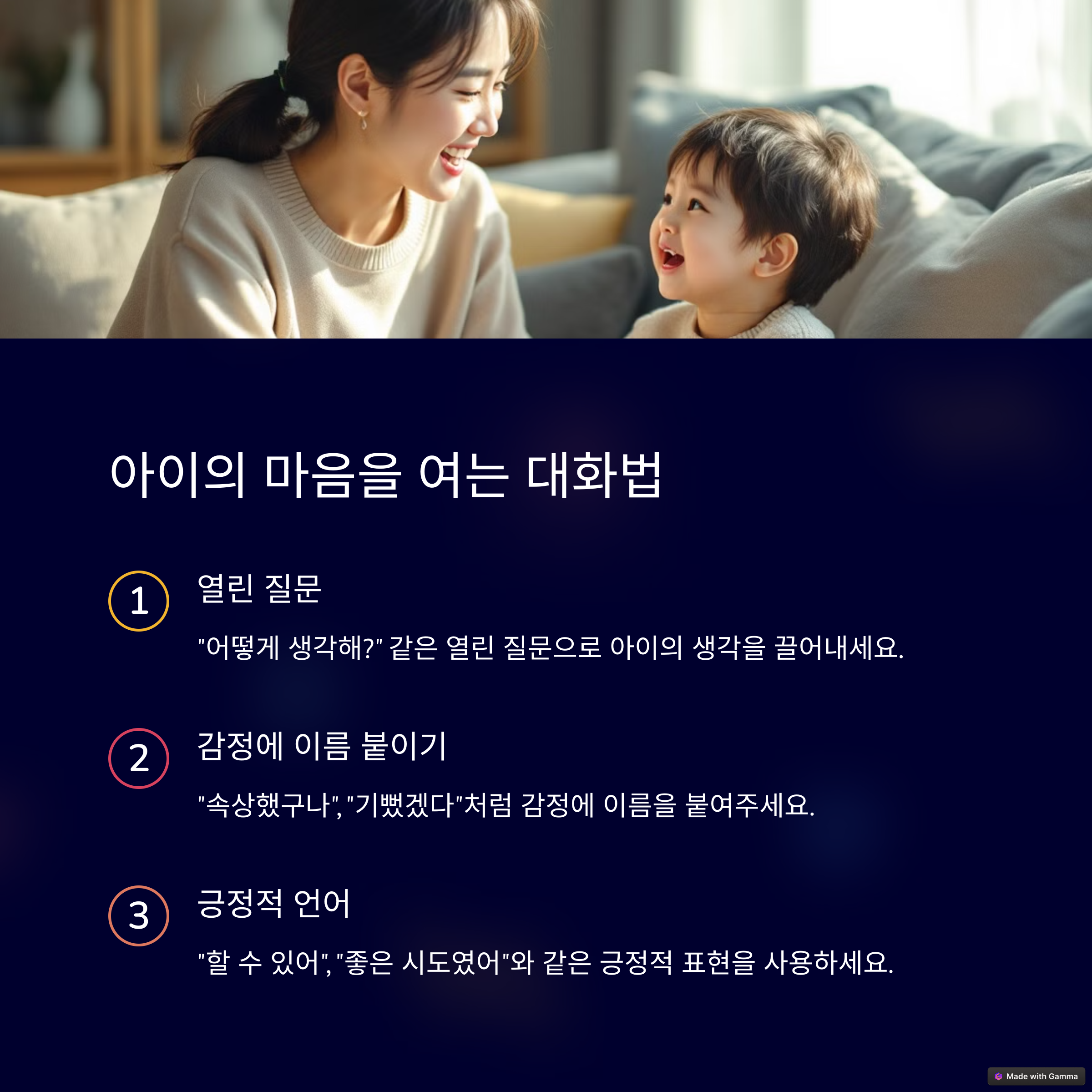 부모와의 대화는 아이의 정서적 안정에 중요한 역할을 합니다.