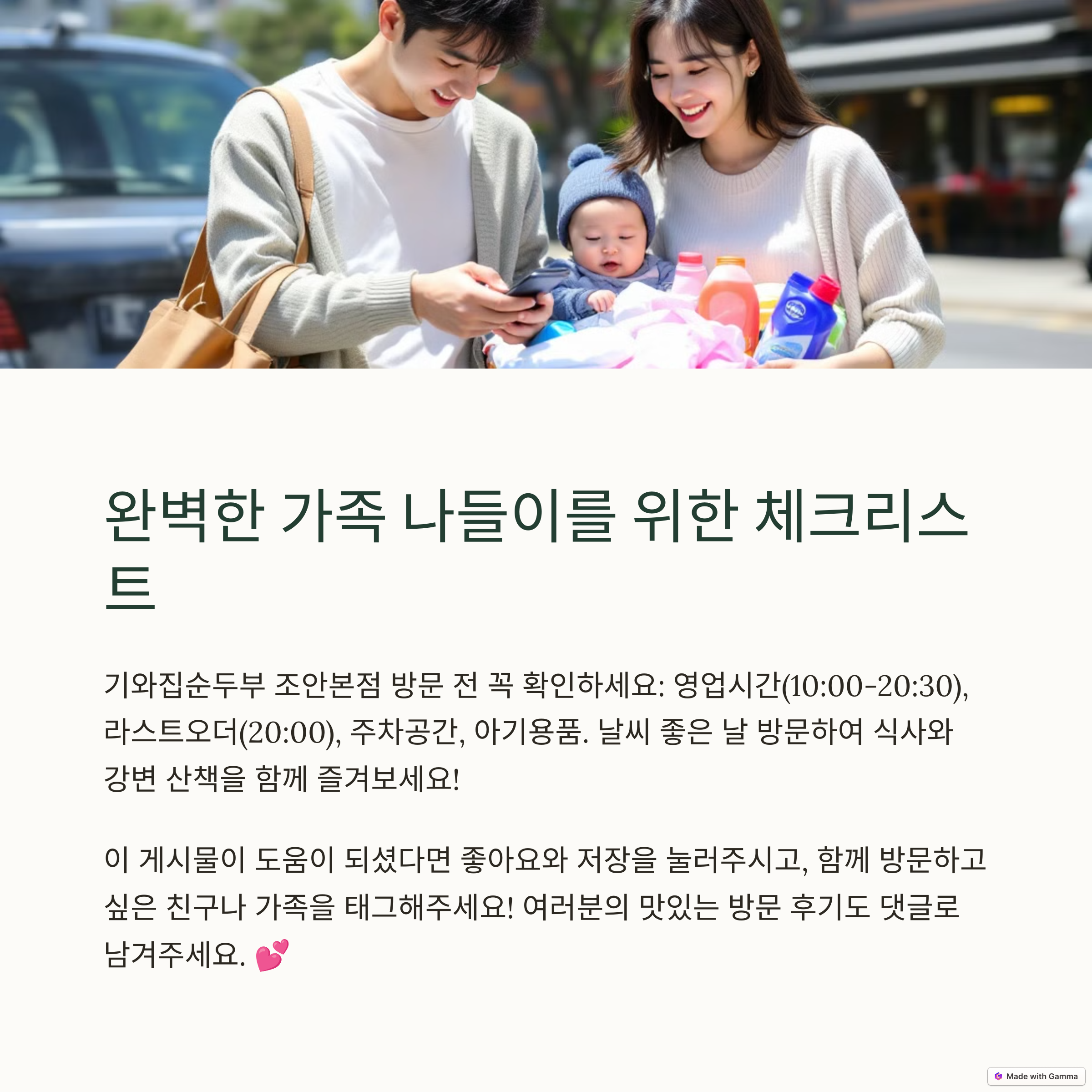 기와집순두부 조안본점은 남양주의 대표적인 두부 전문점으로, 아기와 함께 방문하기에도 좋은 환경을 갖춘 곳입니다. 전통 한옥 분위기 속에서 건강한 두부 요리를 즐기고, 식사 후 북한강과 남한강을 따라 산책하며 여유로운 시간을 보낼 수 있습니다. 가족 나들이를 계획 중이라면 한 번쯤 방문해 보시길 추천드립니다!