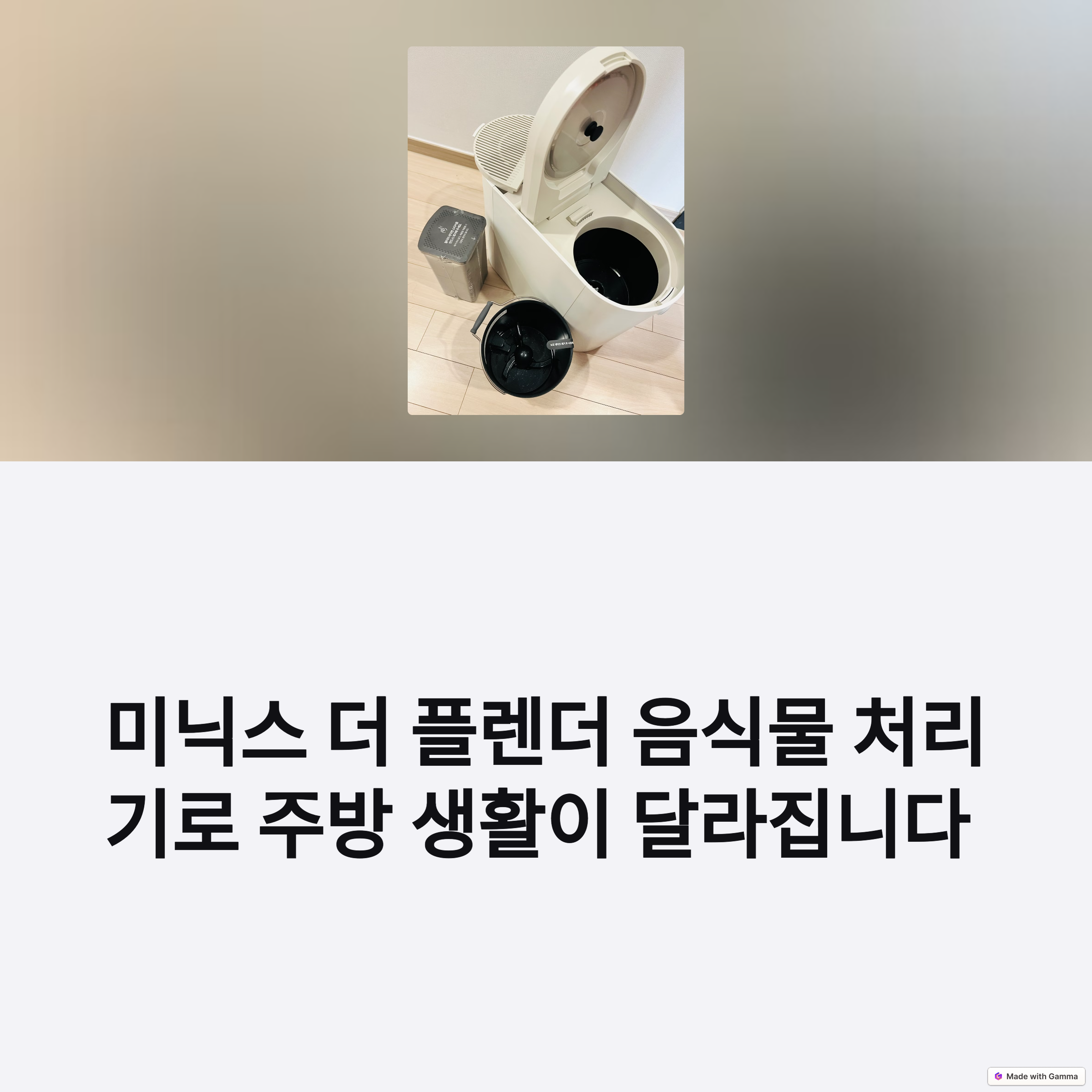 음식물 처리기를 고민 중이라면 미닉스 더 플렌더를 한 번쯤 들어보셨을 텐데요. 작고 세련된 디자인부터 강력한 냄새 제거 기능까지, 많은 사용자들이 만족하는 제품으로 평가받고 있습니다. 오늘은 내돈내산 실사용 후기를 통해 실제 장점과 단점을 자세히 살펴보고, 구매를 고민하시는 분들께 유용한 정보를 제공해드리겠습니다!