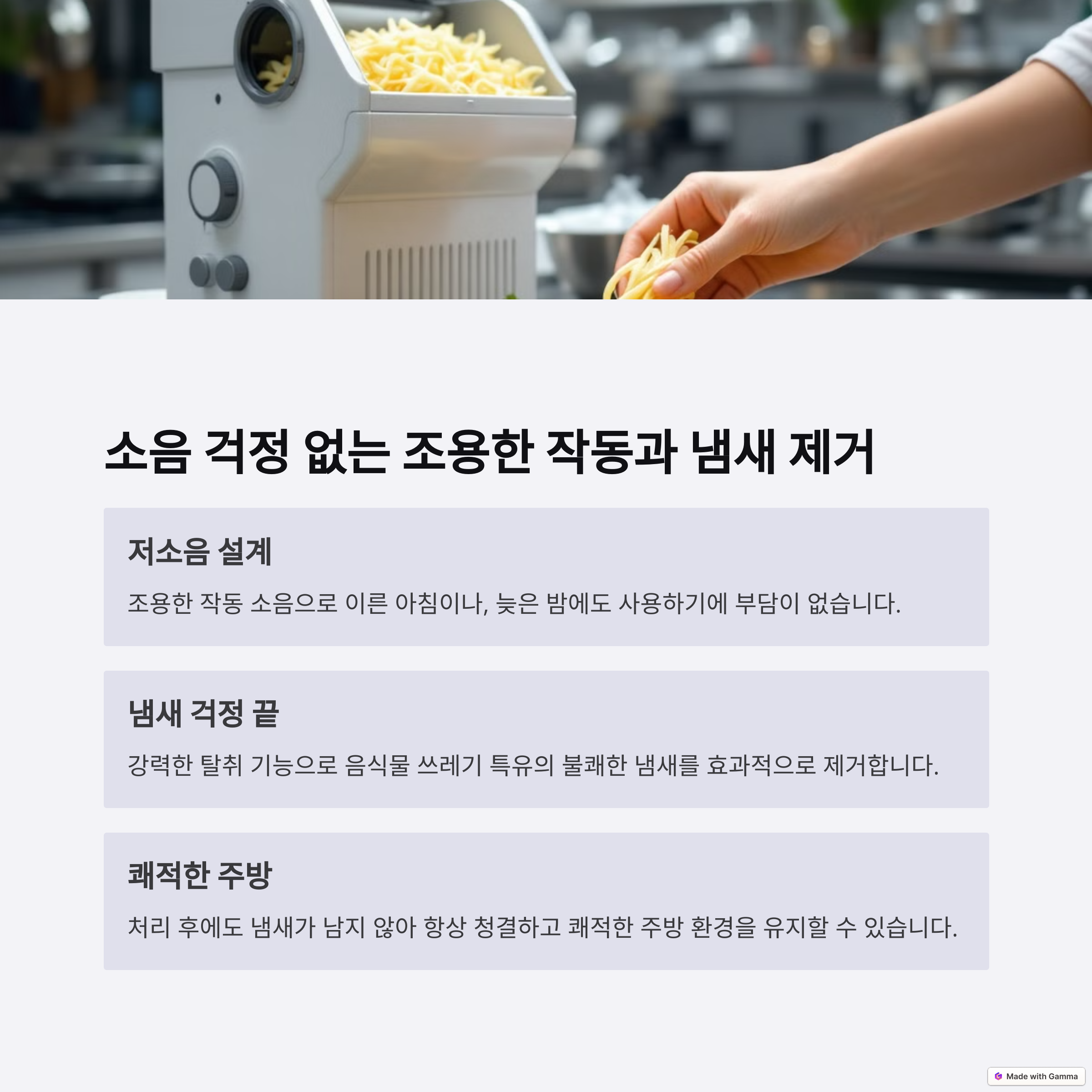 | 강력한 냄새 제거 기능 | 음식물 냄새 최소화 | 냄새 걱정 없는 주방 원할 때 |