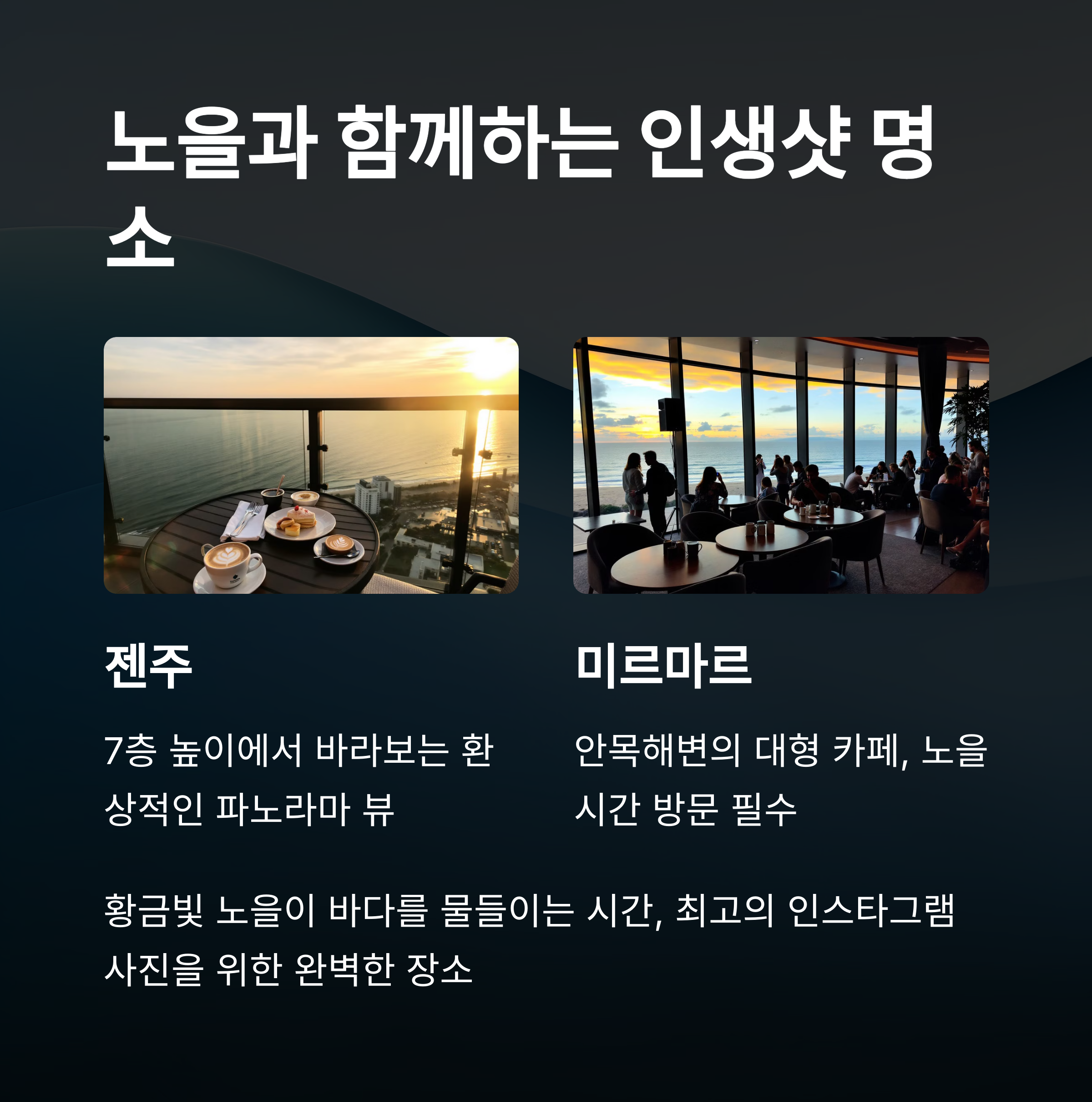 • 카페 바다뷰 – 창가 자리가 인기, 노을이 아름다운 곳
