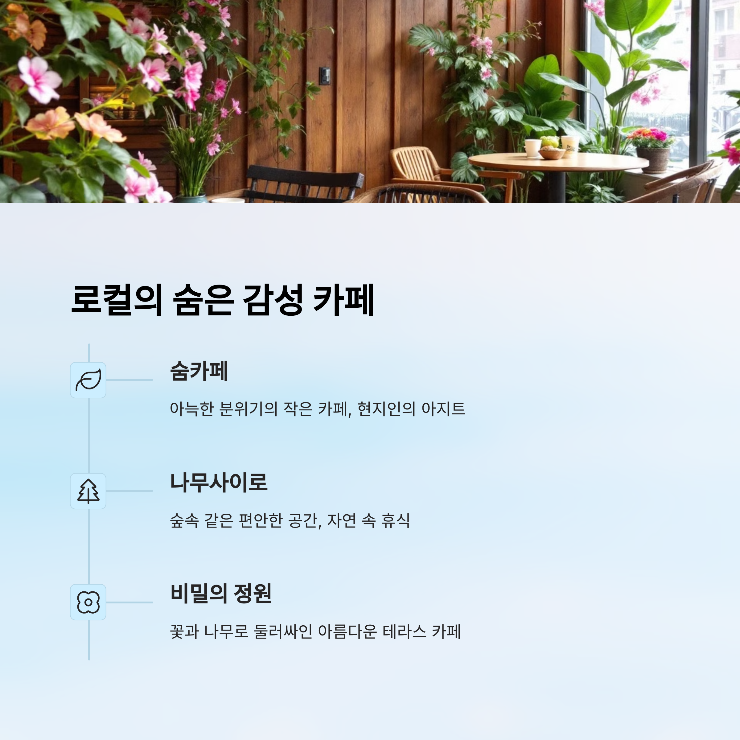 조용한 분위기에서 커피를 즐기고 싶다면 로컬 감성 가득한 카페들을 추천합니다.
