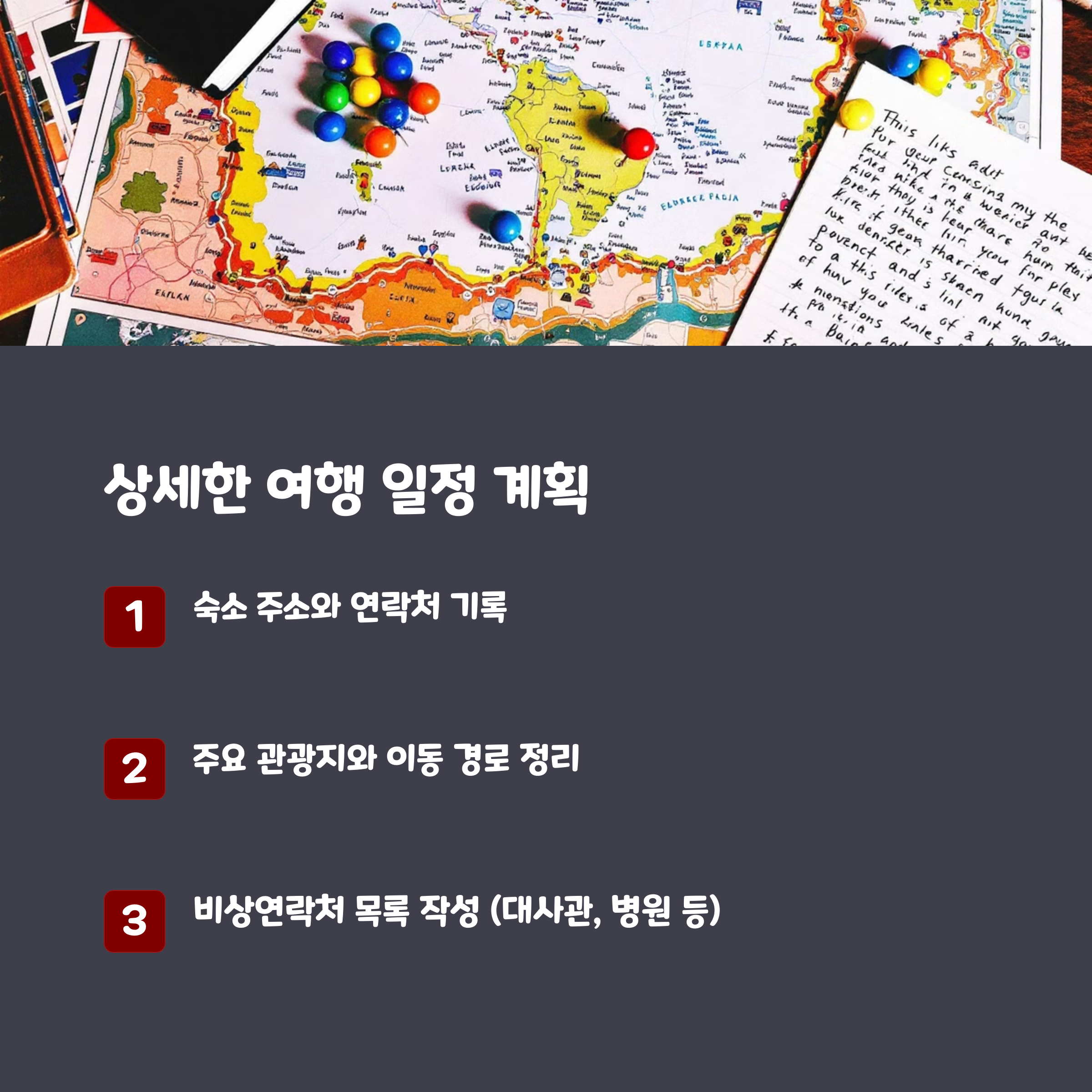 필수 준비사항 목적지 조사, 일정 작성, 숙소 보안 확인 등 사전 체크