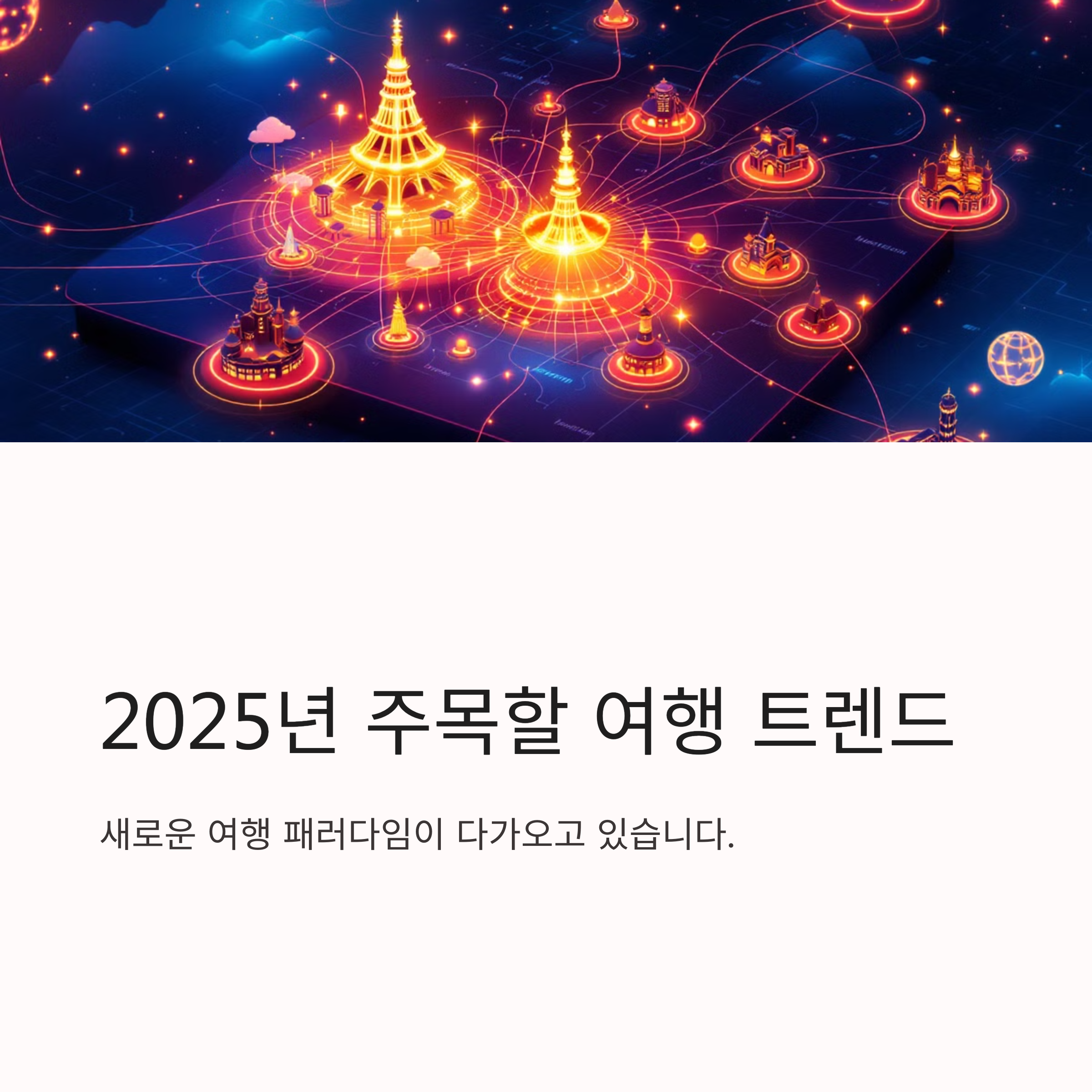 2025년에는 단순한 관광보다 지속 가능한 여행, AI 여행 플래너를 활용한 맞춤형 코스 설계, 그리고 이벤트 중심 여행이 트렌드로 떠오릅니다. 예를 들어 자연 현상(오로라, 일식 등)이나 문화 행사, 글로벌 스포츠 이벤트 등을 기준으로 여행을 계획하는 이유 있는 여행이 증가하고 있습니다. 여행의 목적이 단순히 '쉼'을 넘어서 개인적인 성취나 경험 중심으로 확장되는 흐름입니다.